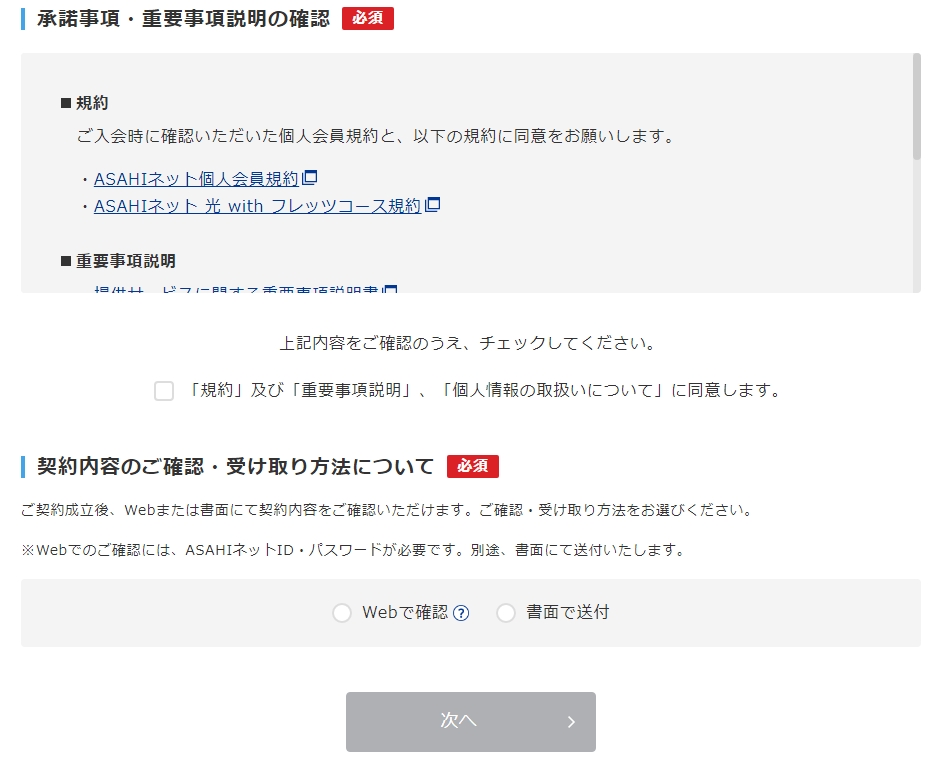 ○○○ 様 ASAHIネットへ申し込みいただき、誠にありがとうございます。 以下の通り、申し込みを受け付けました。 ━━━━━━━━━━━━━ 申込内容 :光 with フレッツ 入会申し込み 受付番号 :****-****-**** ━━━━━━━━━━━━━ ご登録いただいた住所にID・パスワード記載の書面をお届けいた します。 ID・パスワードは1週間以内に郵送いたします。 お申し込み内容はマイページにてご確認いただけます。 https://mypage.asahi-net.or.jp /mypage/apply/top ※確認にはお送りするIDとパスワードが必要です。 ご不明点などがございましたら、「お問い合わせ総合案内」をご参 照ください。