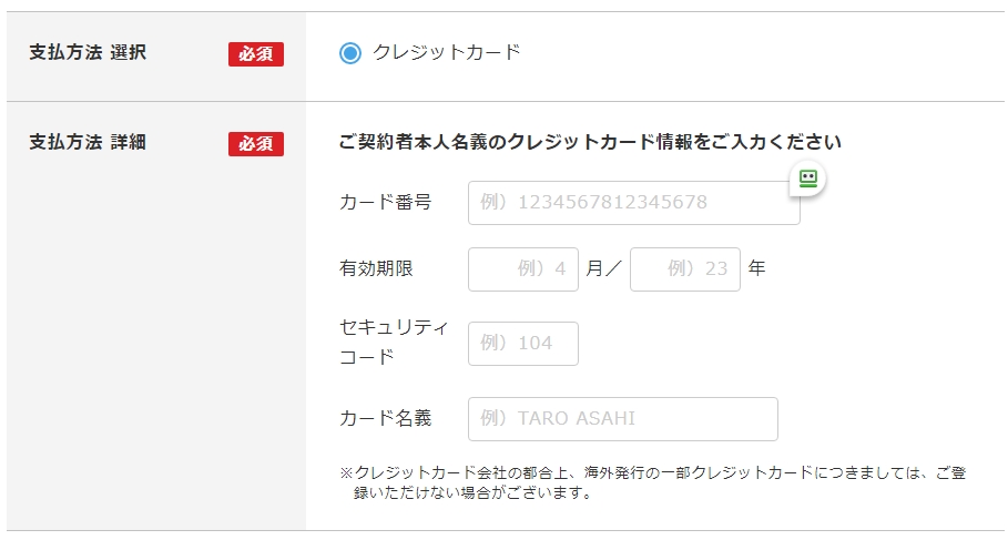 ・お支払い方法: クレジットカードのみになっています。 ・最低利用期間: お申し込み日より最低1年間の利用が必要になります。