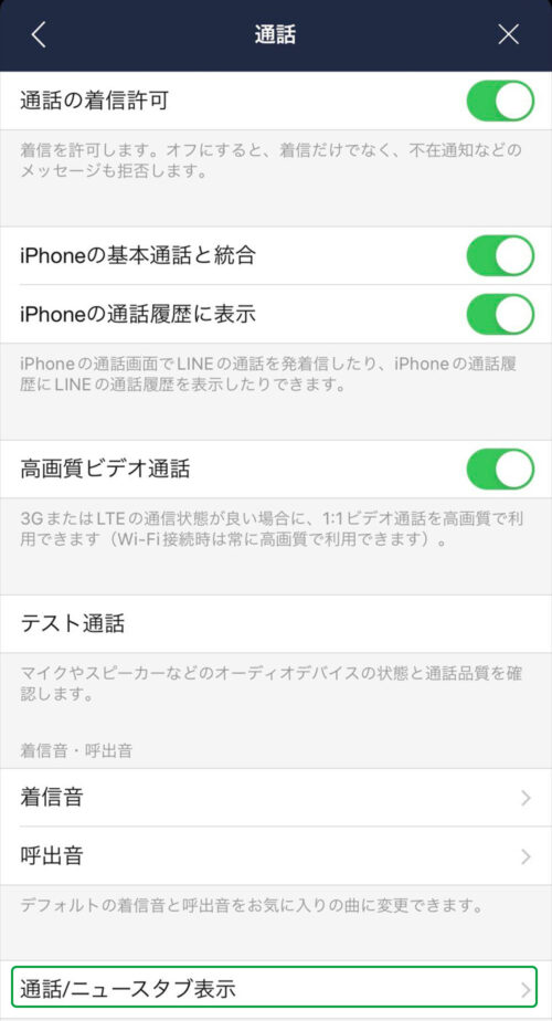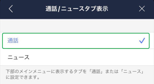 「通話/ニュースタブ表示」(最下部)