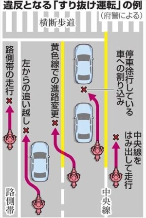 バイクすり抜け違反&禁止行為集