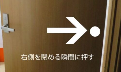 ドアを開ける方向の前へ押せばOKでございます。