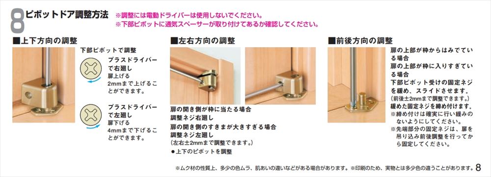 逆にドアの開き側の隙間が開きすぎている場合には「左回し」で調整できます。