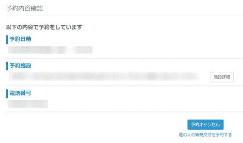 予約内容の確認画面が表示されるようになります。