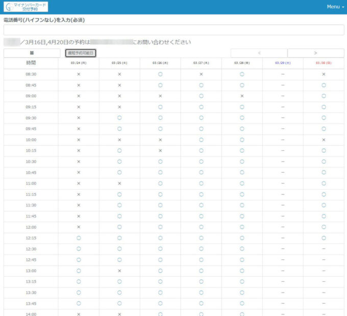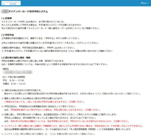 マイナンバー更新の受け取り予約手順