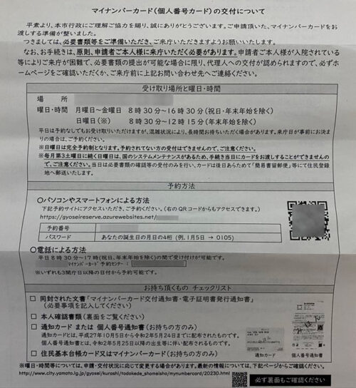 マイナンバー更新申請後の受け取りは予約可能