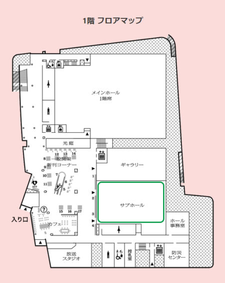 エスカレーターを通り過ぎて、すぐ目の前の場所がサブホールになります。