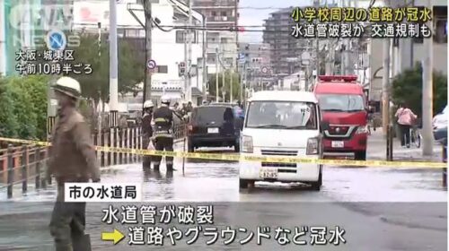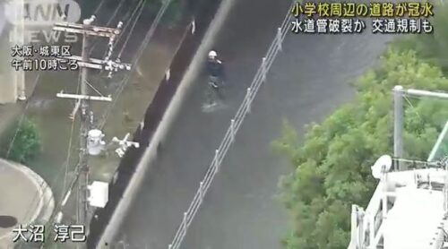 大阪で道路冠水(水道管が破損)