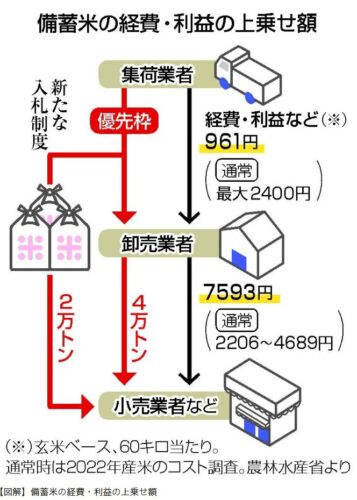 時事通信(備蓄米、卸で上乗せ金額増 最大3倍超、高止まりの一因か)より