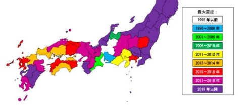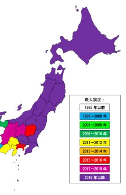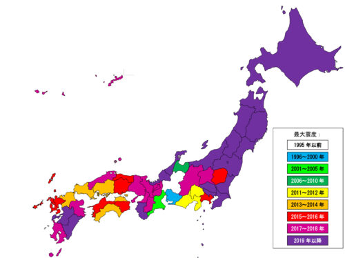 2019年以降は全て紫一色に染まっています。