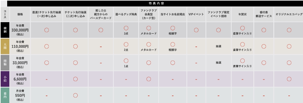 関脇(年間 33,000円)からは、ようやく一般的なファンクラブの9特典が受けられるようであります。