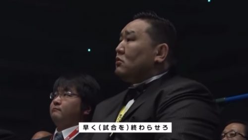 観客席から朝青龍ことドルジさんが厳しい視線で見守っております。