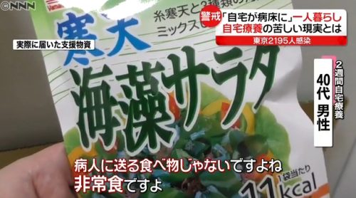 新型コロナウイルス感染者 自宅療養で送られてきた食料が酷いと話題