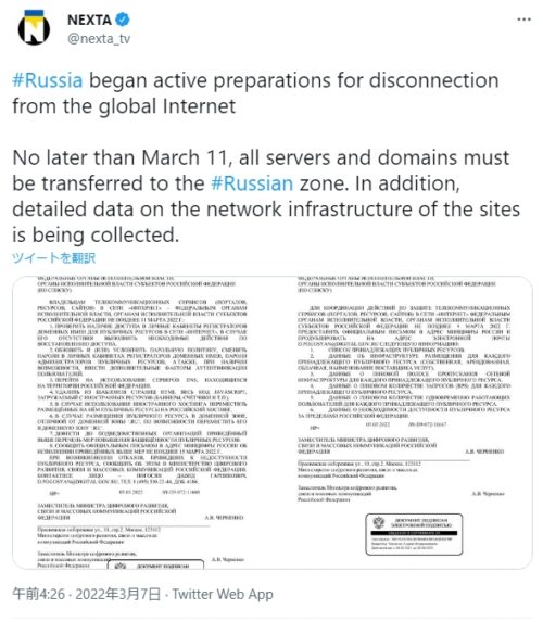 ロシア インターネットを完全遮断予定